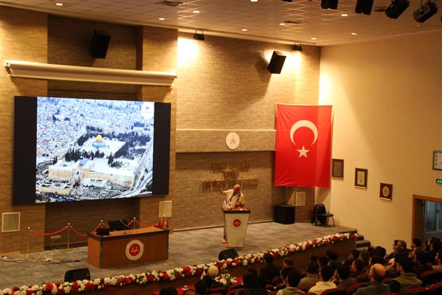 Diyanet Akademisi Başkanlığı Mesleki Eğitim Konferansları kapamasındaKayseri dini Yüksek İhtisas Merkezinde Beytül Makdis Dernek Başkanı ve Cihannüma Kayseri Temsilcisi Avukat Fevzi Konaç tarafından “Davamız Kudüs” konulu bir konferans gerçekleştirdi.