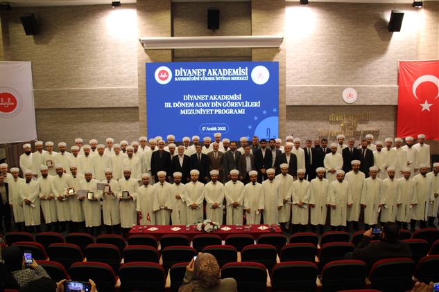 Diyanet İşleri Başkanlığı kadrolarına imam-hatip olarak ilk defa atanacak 73 aday din görevlisi, 8 aylık eğitimin ardından Diyanet Akademisi Kayseri Dini Yüksek İhtisas Merkezi’nde akademi eğitimlerini başarıyla tamamladı.